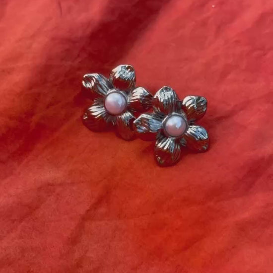 These sculpted flower studs feature beautifully detailed petals and a soft pearl accent at the heart of each bloom. Lightweight, versatile, and perfect for everyday elegance.